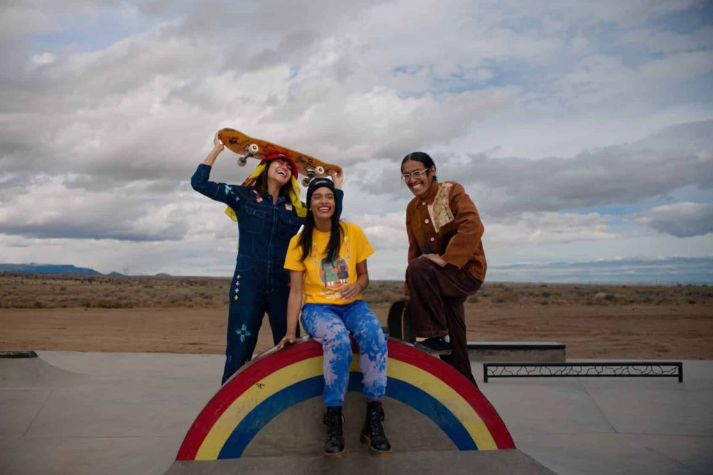 In addition to the fashion show experience, 4KINSHIP is also hosting the Indigenous Futures 4EVER Block Party, an Indigenous-led event that is a way all our relations can come together in cross-border allyship, share ideas, support one another, and express ourselves freely. Join us for food booths, hand poked tattoos, an Indigenous art market, skateboarding, and more. The 4KINSHIP High Vibes Shop will be open featuring work from IF4 artists as well. The event will be open from 10 am to 9 pm, for the weekend of August 17th & 18th at the Santa Fe Railyard. For more details about the 4KINSHIP events during Santa Fe Indian Market, follow @4KINSHIP on social media or visit www.4kinship.com.
