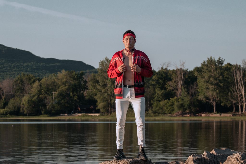 For model Wahatehontsatshén:ri, the reason for doing the shoot is because they’re finally proud of their queer identity. “I struggled to accept myself thinking I would disappoint my friends and family, but at the end of the day, they wanna see me happy and thriving, and that’s what I’m doing. Being my most authentic and happiest self.”