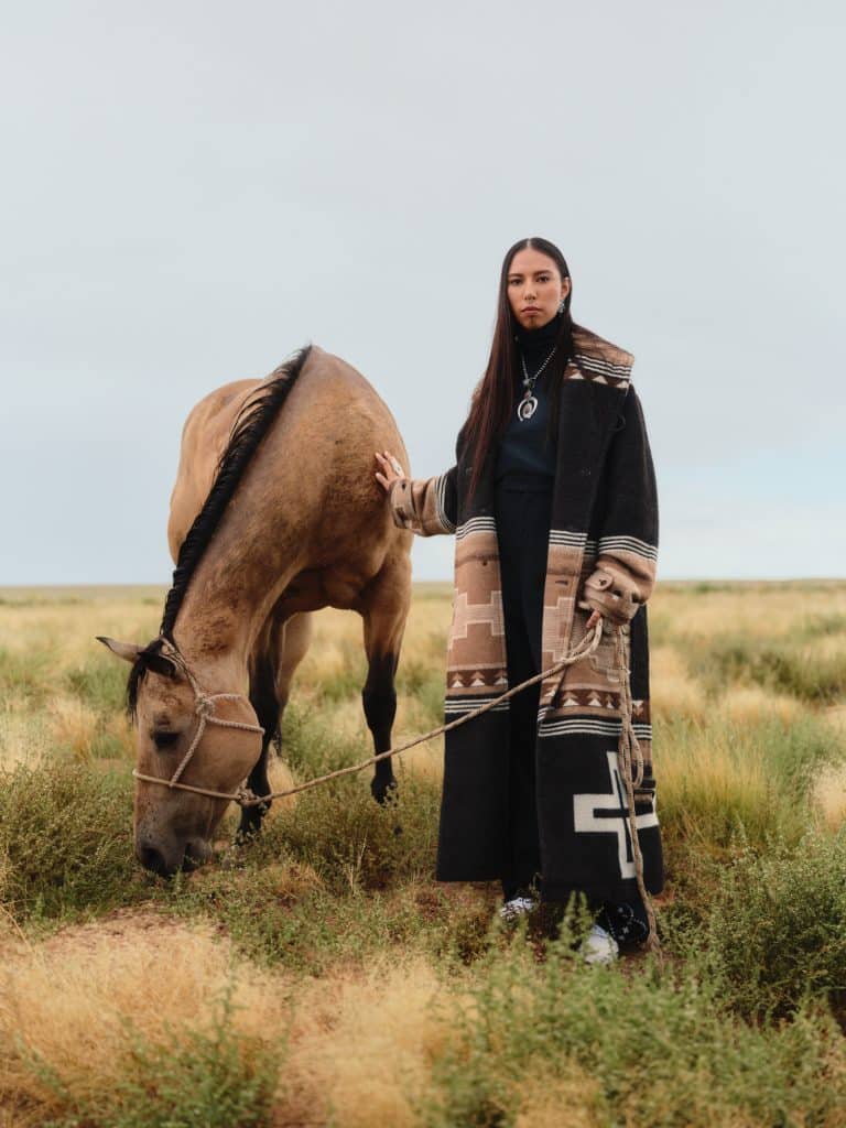 The first capsule will be accompanied by a campaign shot by Ryan Redcorn (Osage) and Darren Sells (Navajo), as well as an anthemic short film series directed by award-winning filmmaker Shaandiin Tome (Navajo).