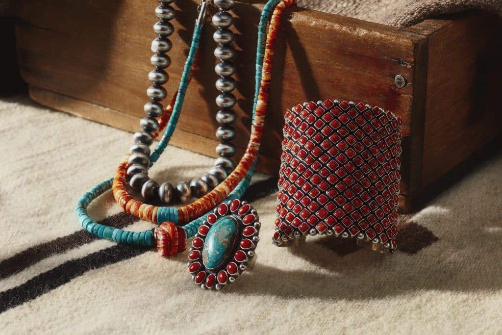 Glasses, an avid turquoise and silver collector, curated a unique selection of handcrafted silver and turquoise jewelry from seven Navajo and Hopi artisan families, showcased throughout the campaign and available for purchase online and in select flagship doors.