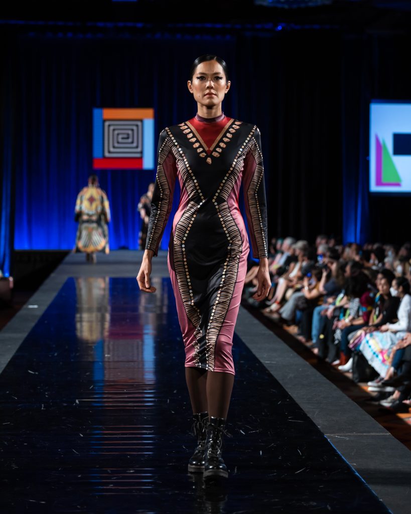 Santa Fe Native Fashion Week by SWAIA Indigenous Fashion: Premiering the first week of May 2024, the four-day event includes fashion symposia, a soirée and runway days showcasing the talent of Indigenous designers across North America— while featuring artists who merge the boundaries between art, design and fashion. Contemporary Native American fashion is a vibrant and diverse field that reflects the creativity and innovation of Indigenous knowledge expressed through material culture.