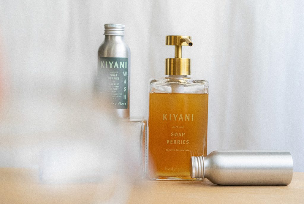 The values behind Miranda’s brand are clearly seen in the sustainable elements present in each of her soaps and packaging. “We create concentrated body-wash formulation. As a concentrate, we only sell the essentials and then when you get the concentrate, you can add water to it at home to create a full bottle of soap….Our soap dispensing bottle can be re-used over and over, it’s made of glass and a stainless-steel pump. Our concentrate is in an aluminum bottle, and as you know, aluminum has a much higher chance of being recycled compared to plastic. Even our salves are in a refill system – so you have a holding container, which is bamboo, and then you have a refill which is in a paper container.”