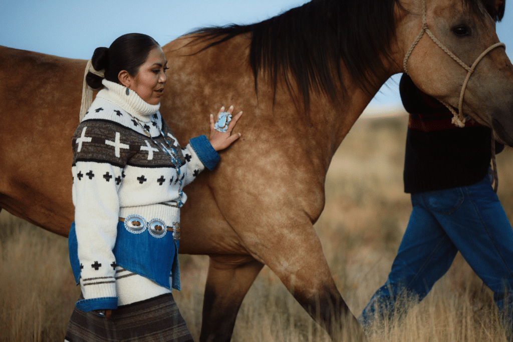 Collaborations between established brands and artists from Indigenous communities can be important and can have a tremendous impact. They provide a platform for Indigenous artists to showcase their talent and unique perspectives, promoting cultural representation. By featuring artists like Glasses, Ralph Lauren’s program could contribute to a more diverse and inclusive representation of cultures within the fashion industry. Multi-generational artists like Glasses connect deeply to their cultural heritage and traditional art forms through their designs. Collaborating with mainstream brands allows Indigenous artists to share their traditional practices and helps preserve and continue these art forms. In addition, working with established brands offers Indigenous artists economic empowerment through opportunities. Through collaborations, artists gain exposure to wider audiences and markets, potentially leading to increased sales and recognition for their work.