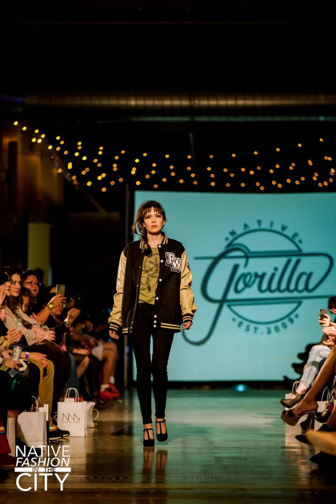 One of the youth models that night, Talon Long, wore both Trujillo’s and Native Gorilla’s pieces. Having been a part of the 2019 show, Long had reflected on the benefits the show had for the community, stating that: “I think it definitely helps get some awareness out there, it lets you see that there are different types of native fashion rather than just the traditional thing.” The crowd was particularly supportive of the youth models like Long, excited to see these newcomers have their time in the spotlight.
