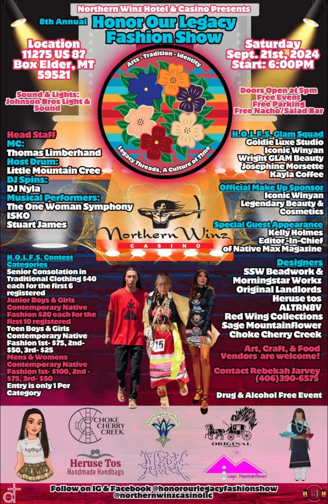 The two-part event is free and includes parking and dining. The event encourages Chippewa Cree community members to share their fashion and win cash prizes!