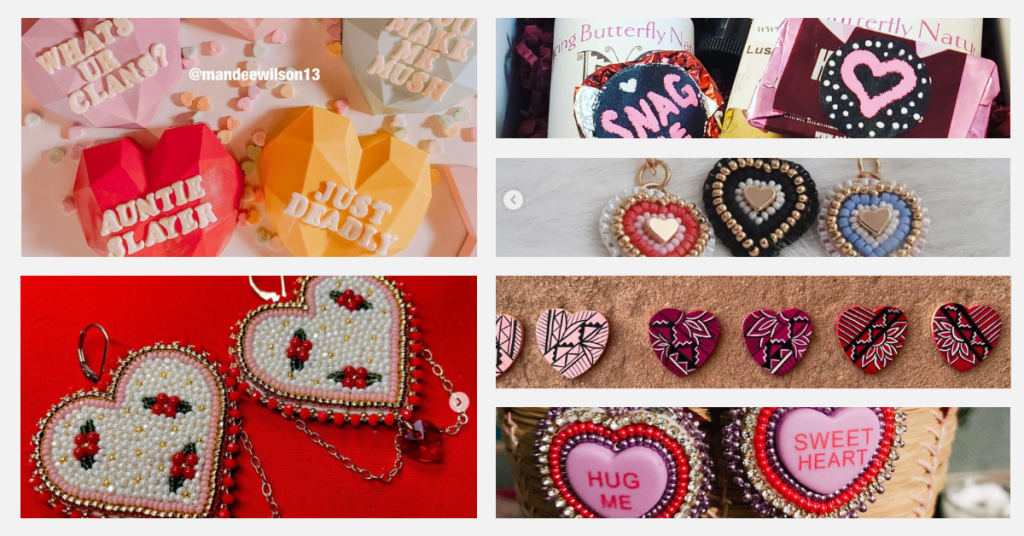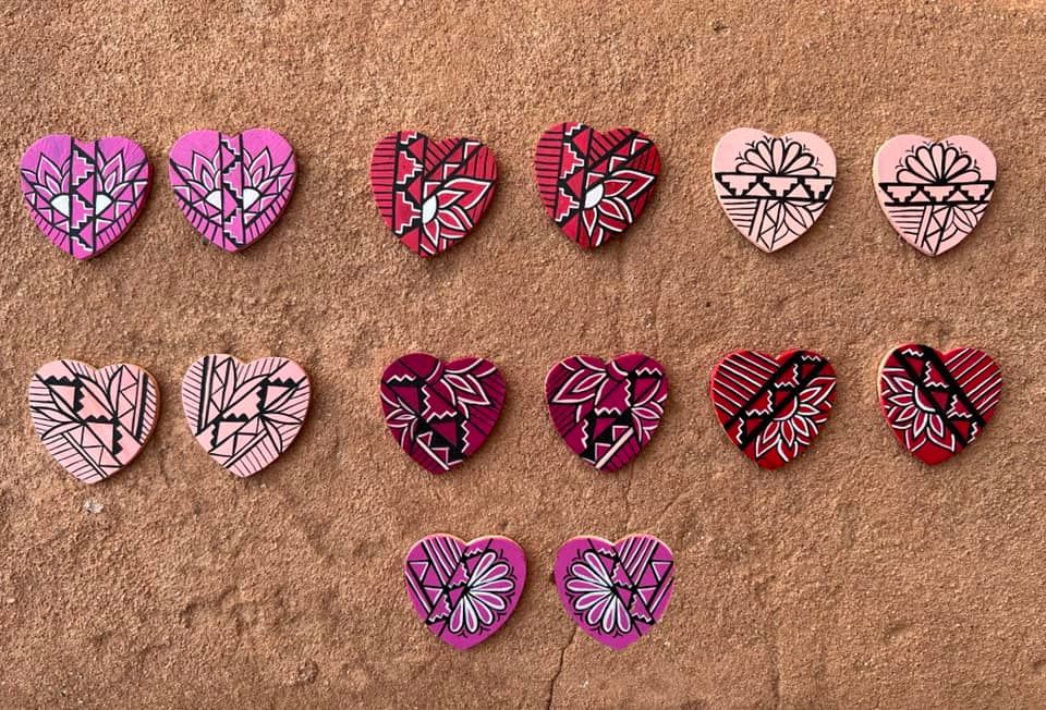 SunnyShine Native Design released small handpainted heart earrings as a part of their Valentine’s Collection at $25 each. Check out their Etsy or message on Facebook to buy.